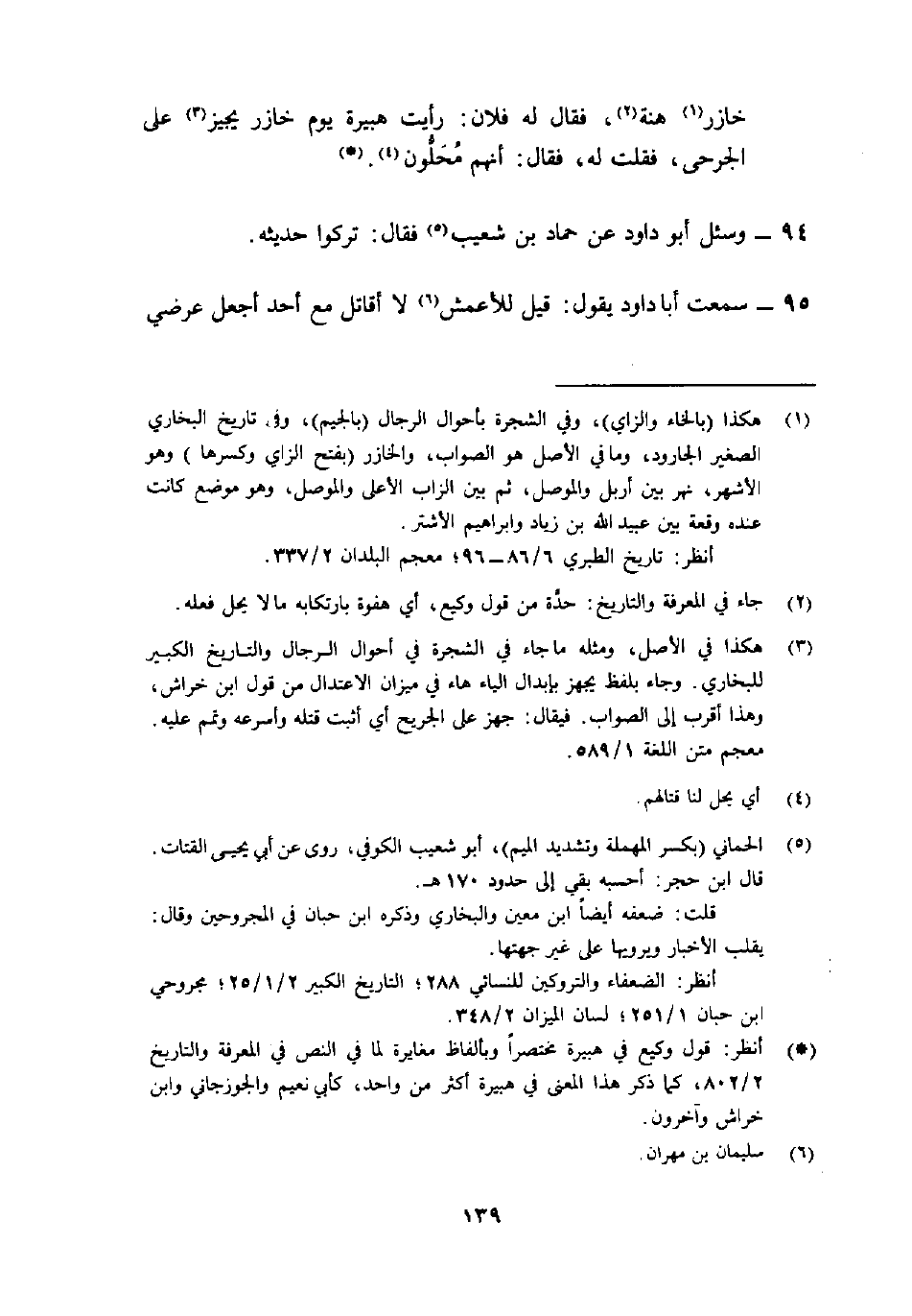 (*) انظر: قول وكيع في هبيرة مختصراً وبألفاظ مغايرة لما في النص في المعرفة والتاريخ 2/802، كما ذكر هذا المعنى في هبيرة أكثر من واحد، كأبي نعيم والجوزجاني وابن خراش وآخرون.