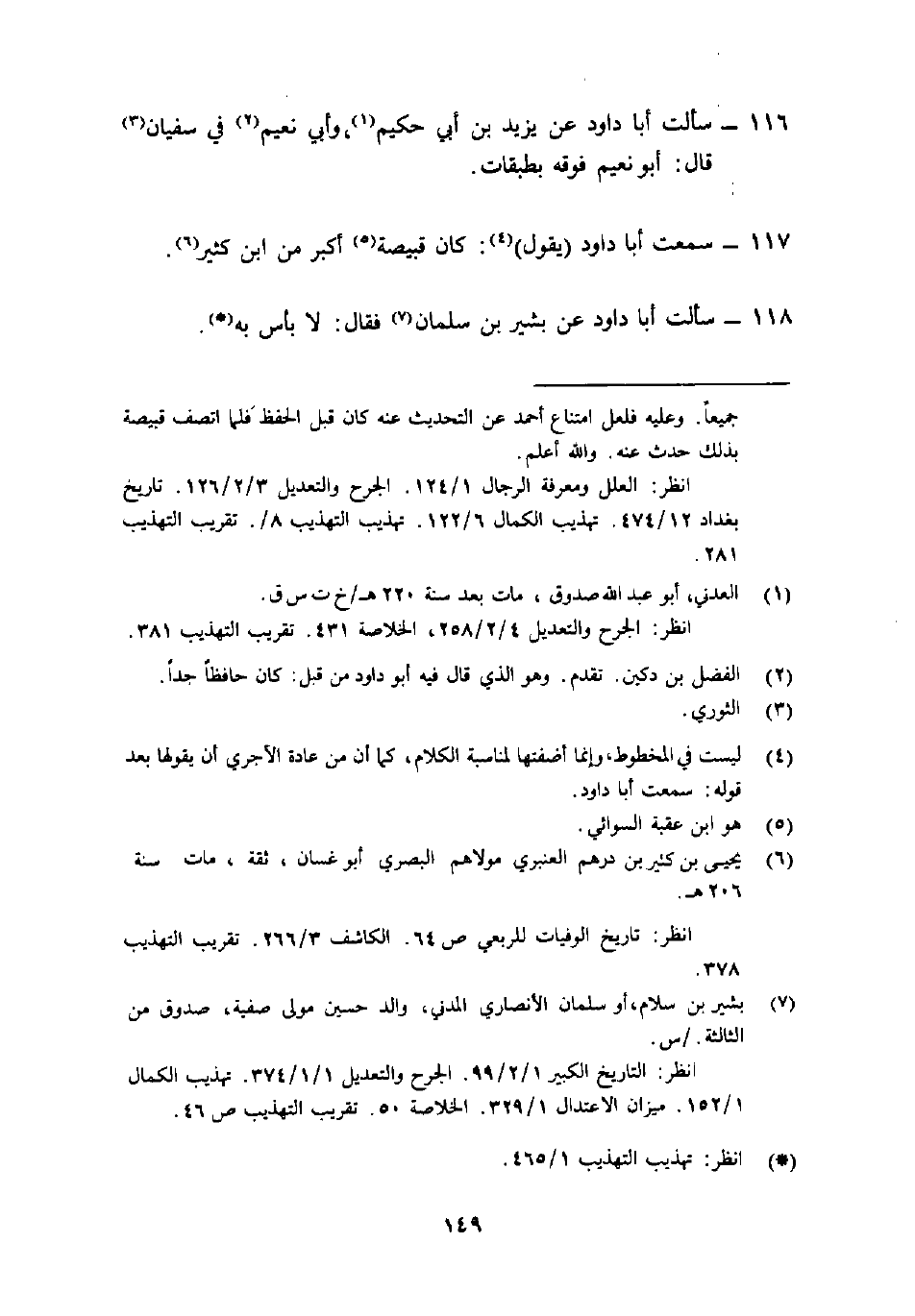 116- سألتُ أبا دَاوُد عَن يَزِيد بْن أَبِي حَكِيم1 وأبي نعيم2 فِي سُفْيَان3 قَالَ: "أَبُو نعيم فوقه بطبقات".