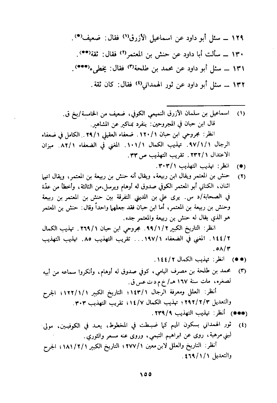 129- سئل أَبُو دَاوُدَ عَن إسمعيل الأزرق1 فَقَالَ: "ضعيف" (*) .