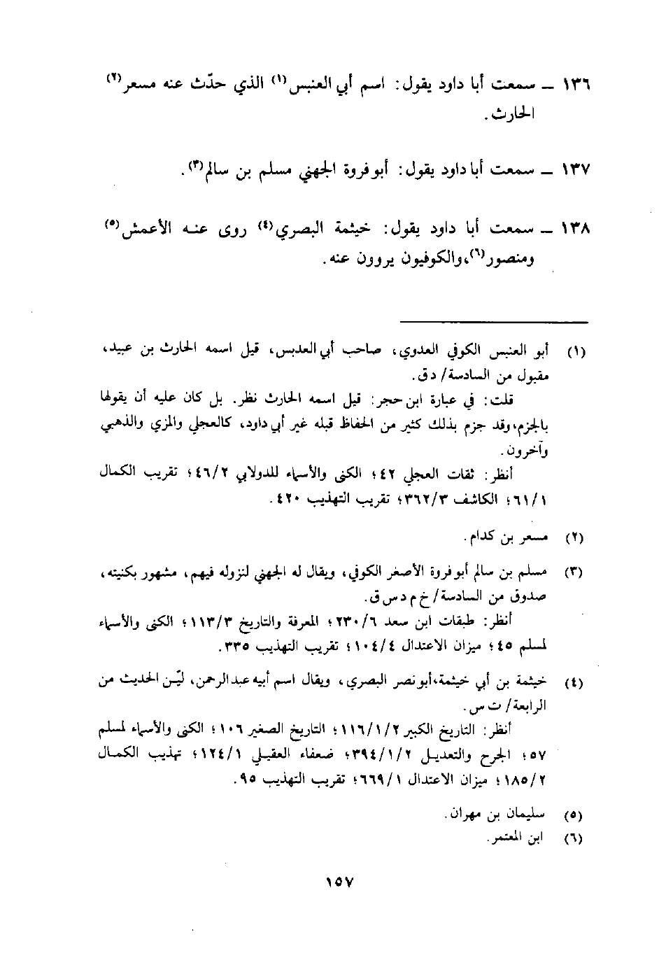 138- سمعت أبا دَاوُد يَقُول: "خَيْثَمةُ البصري4 رَوَى عَنْهُ الأَعْمَش5 ومنصور6، والكوفيون يروون عَنْهُ".