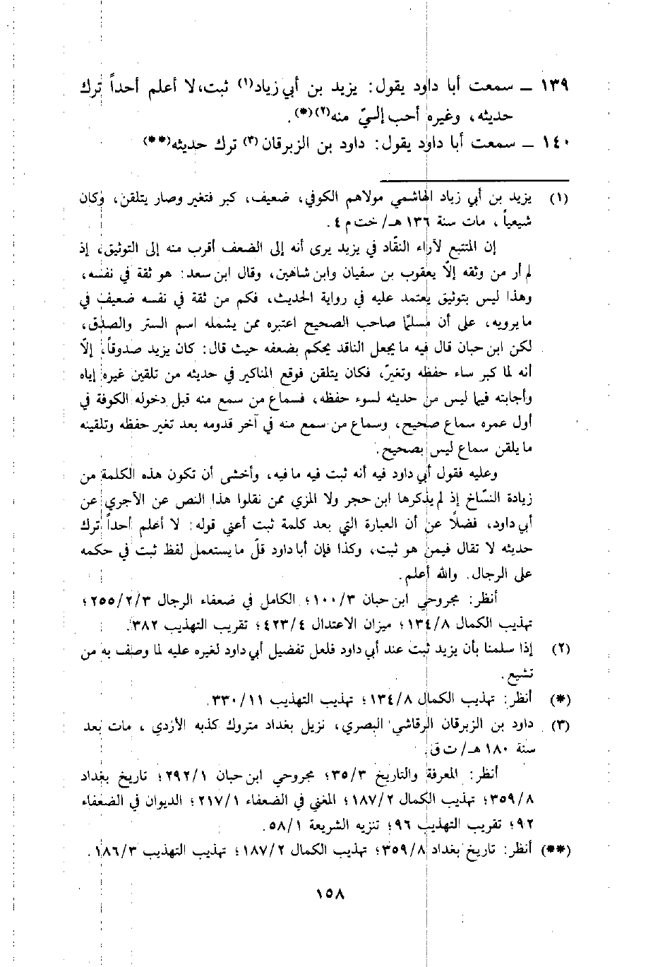 139- سمعت أبا دَاوُد يَقُول: "يَزيد بْن أَبِي زِيَاد1 ثبت، لا أعلَمُ أحدًا تركَ حَدِيثَه، وغيره أحبُّ إليَّ منه"2 (*) .