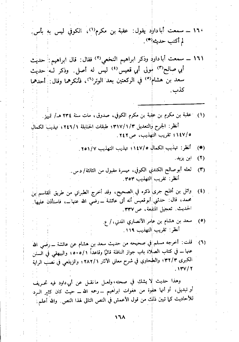 160- سمعت أبا دَاوُد يَقُول: "عُقبة بْن مُكَرَّم1، الكوفي لَيْسَ بِهِ بأس. لم أكتب حَدِيثه" (( () .