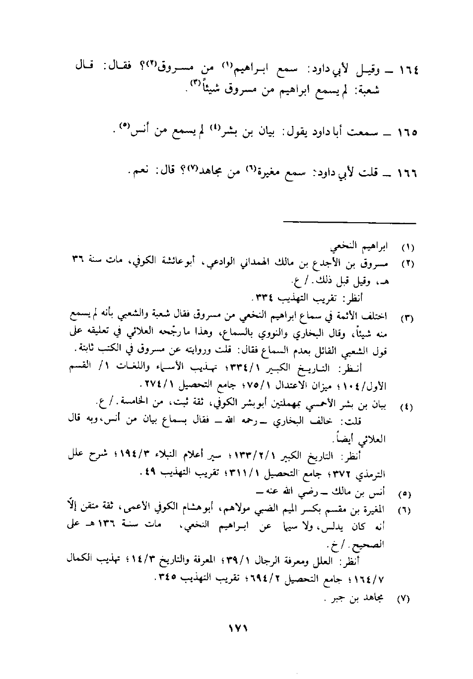 164- وقيل لأبي دَاوُد: "سمع إِبْرَاهِيم1 من مسروق2؟ فَقَالَ: قَالَ شُعْبَة: لَمْ يسمع إِبْرَاهِيم من مَسْرُوق شيئًا"3.
