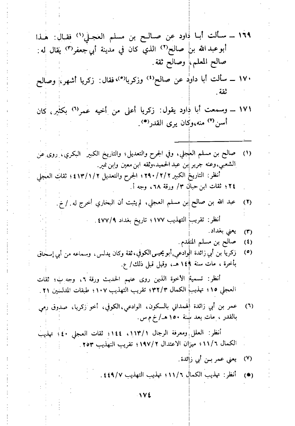 170- سألت أبا دَاوُد عَن صَالِح4 وزكريَّا5 فَقَالَ: "زَكَرِيَّا أشهر، وصالح ثقة".