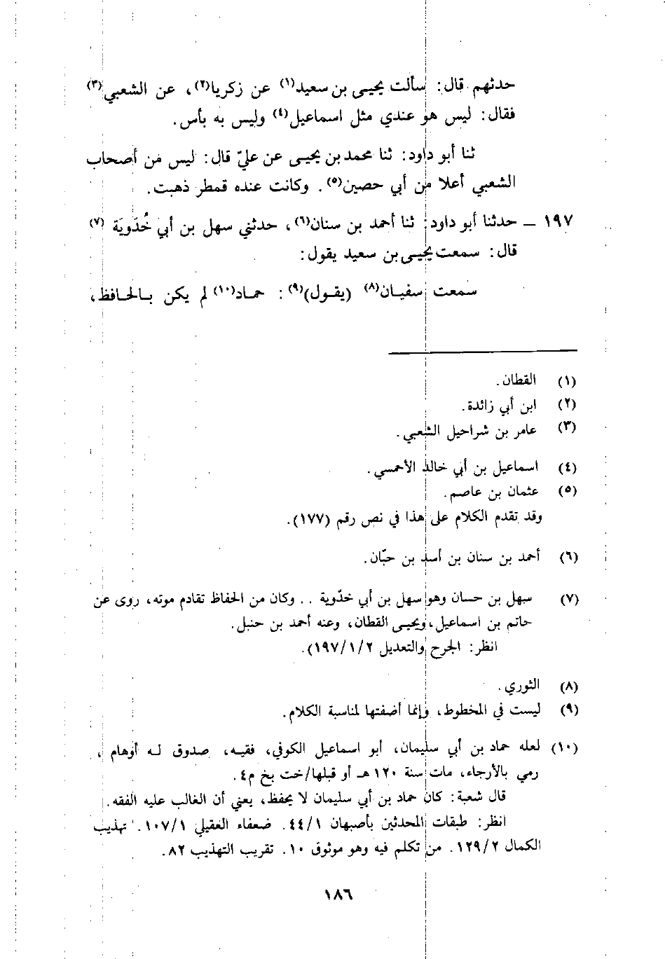 حَدَّثَنَا أَبُو دَاوُدَ: "ثنا أَحْمَد بْن سنان6، حَدَّثَنِي سَهْل بْن أَبِي خُدَوية7 قَالَ: سمعت يَحْيَى بْن سَعِيد يَقُول: سمعت سُفْيَان8 (يَقُول) 9: حماد10 لم يكن بالحافظ،