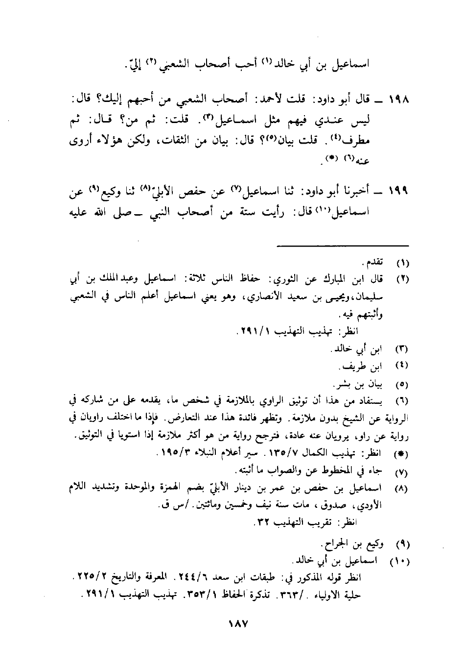198- قَالَ أَبُو دَاوُدَ: "قُلْت لأحمد: أَصْحَاب الشَّعْبِي من أَحبُّهم إليك؟ قَالَ: لَيْسَ عندي فيهم مثل إِسْمَاعِيل3. قُلْت: ثُمَّ من؟ قَالَ: ثُمَّ مُطَرِّفٍ4. قُلْت بَيَان5؟ قَالَ: بيان من الثقات، ولكن هَؤُلاءِ أَروَى عَنْهُ"6 (() .