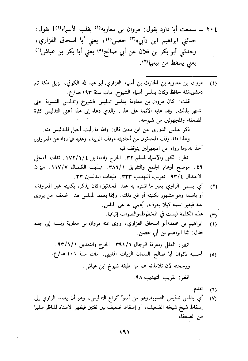204- سمعت أبا دَاوُد يَقُول: "مَرْوَان بْن مُعَاوِية1 يقلب الأسماء2! يَقُول: حدثني إبراهيم ابن (أبي) 3 حِصْن4، يَعْنِي أبا إِسْحَاق الفزاري، وحدثني أَبُو بَكْر بْن فُلان عَن أَبِي صَالِح5 يَعْنِي أبا بكر من عياش6 يَعْنِي يسقط من بينهما"7.