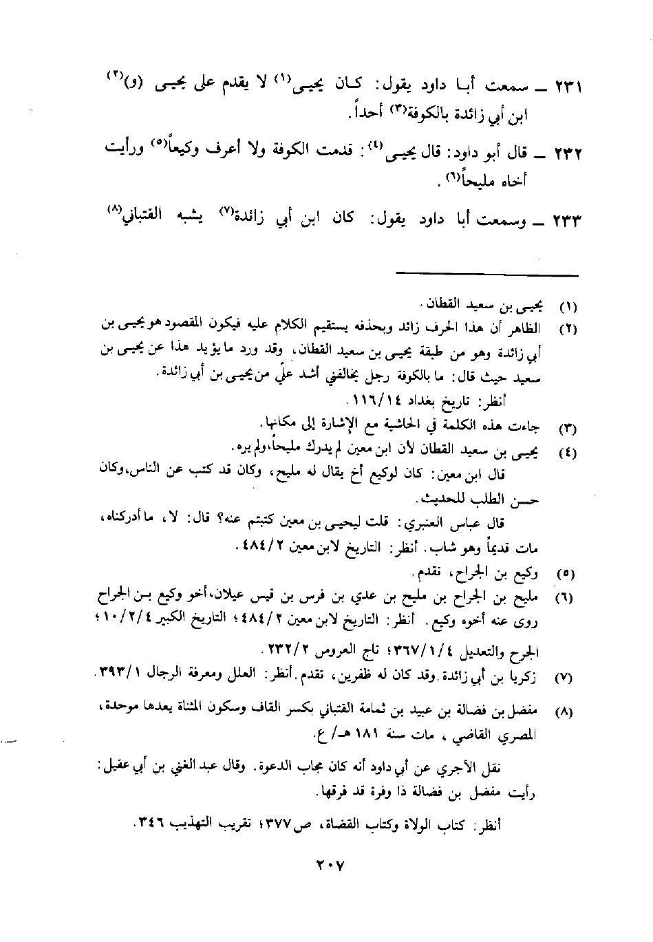 231- سمعت أبا دَاوُد يَقُول: "كَانَ يَحْيَى1 لا يقدم عَلَى يَحْيَى (و) 2 ابن أَبِي زائدة بالكوفة3 أحدًا".