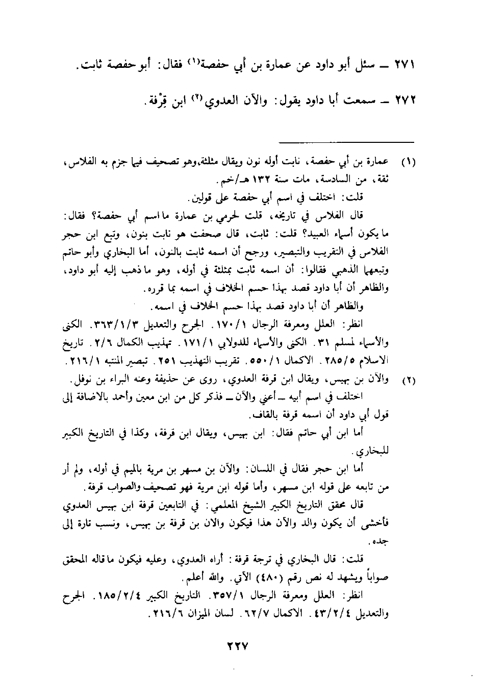 272- سمعت أبا دَاوُد يَقُول: "وَالان العَدوي2 ابْن قِرْفة".
