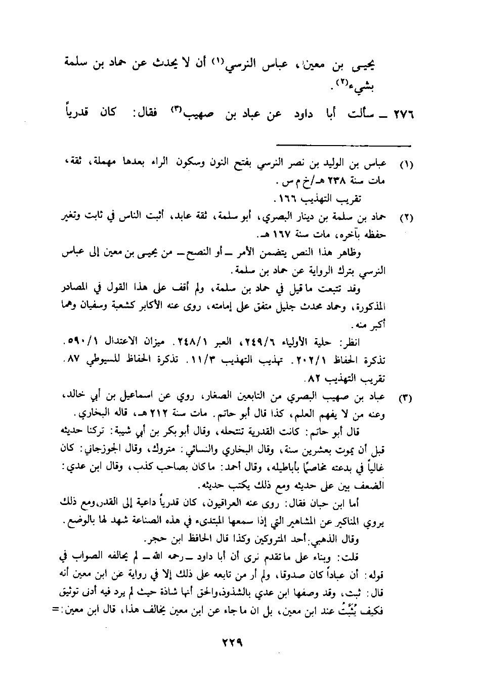 سألت أبا دَاوُد عَن عَبّاد بْن صُهَيب3 فَقَالَ: "كَانَ قدرياً