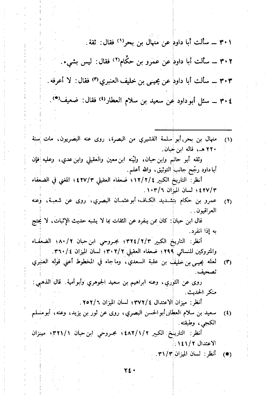 301- سألت أبا دَاوُد عَن مِنْهال بْن بَحْر1 فَقَالَ: "ثقة".