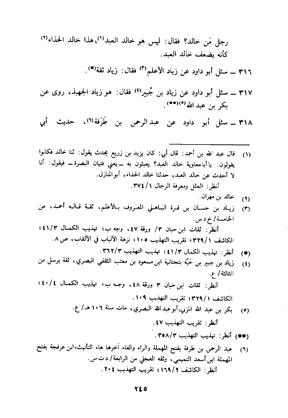 317- سئل أَبُو دَاوُدَ عَن زِيَاد بْن جُبير4 فَقَالَ: "هُوَ زِيَاد الجِهْبِذ، رَوَى عَن بَكْر بْن عَبْد اللَّهِ"5 (() .