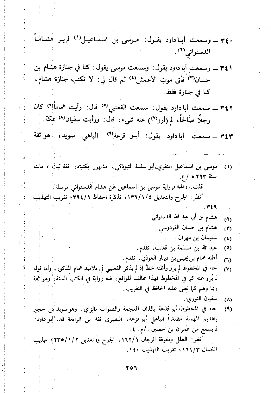 342- سمعت أبا دَاوُد يَقُول: "سمعتُ القَعْنَبِيَّ5 قَالَ: رأيتُ هَمَّامًا6 كَانَ رجلًا صالحًا، لم (أرو7) عنه شيء، قال: ورأيت سُفْيَان8 بمكة".