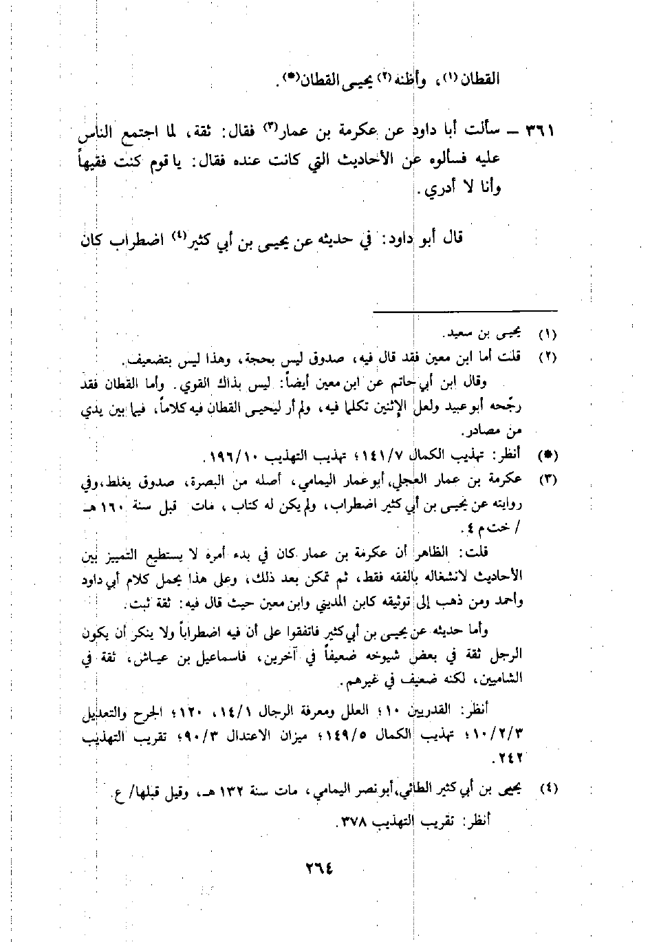 361- سألت أبا دَاوُد عَن عكرمة بْن عَمَّار3 فَقَالَ: "ثقة، لما اجتمع النَّاس عَلَيْهِ فسألوه عَن الأحاديث الَّتِي كانت عنده فَقَالَ: يا قوم كنتُ فقيهًا وأنا لا أدري".