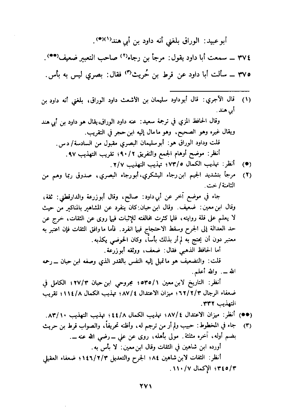 374- سمعت أبا داود يقول: "مرجأ بْن رَجاء2 صاحب التعبير ضعيف" (() .