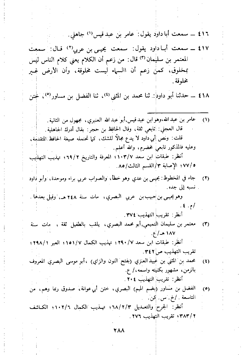 416- سمعت أبا دَاوُد يَقُول: "عامرُ بْن عبد قَيْس1 جاهِليُّ".