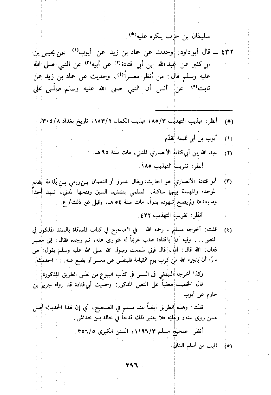 قَالَ أَبُو دَاوُدَ: وَحَدَّثَ عَنْ حَمَّادِ بْن زَيْد عَن أيوب1 عَن يَحْيَى بْنِ أَبِي كَثِيرٍ عَنْ عَبْدِ اللَّهِ بْنِ أَبِي قَتَادَةَ2 عَنْ أَبِيهِ3 عَنِ النَّبِيِّ صَلَّى اللَّهُ عَلَيْهِ وَسَلَّمَ قَالَ: "مَنْ أنظر معسراً" 4، وحديث عَن حماد بْن زَيْد عَن ثَابِتٍ5 عَنْ أَنَسٍ "أَنَّ النَّبِيَّ صَلَّى اللَّهُ عَلَيْهِ وَسَلَّمَ صَلَّى على