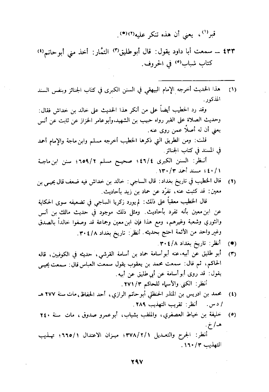 433- سمعت أبا دَاوُد يَقُول: "قَالَ أَبُو طليق3 التمَّار: أخذ مني أَبُو حاتم4 كتاب شباب5 في الحروف".