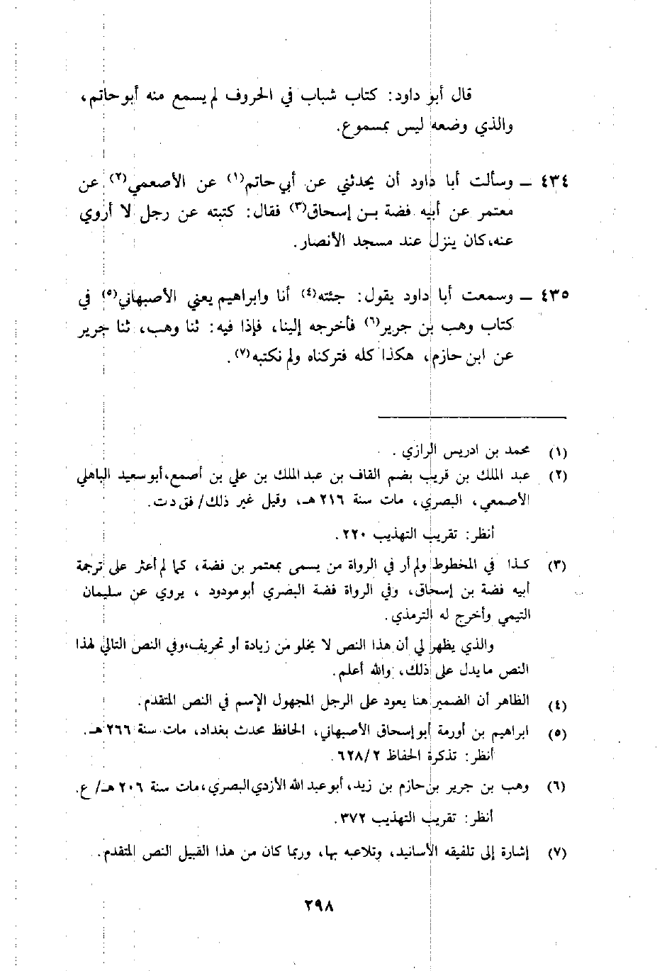 435- وسمعت أبا دَاوُد يَقُول: "جئته4 أنا وإبراهيم يَعْنِي الأصبهاني5 فِي كتاب وهب بْن جَرِير فأخرجه إلينا، فَإِذَا فِيهِ: ثنا وهب، ثنا جَرِير6 عَن ابْن حازم، هكذا كُلهُ فتركناه ولم نكتبه"7.
