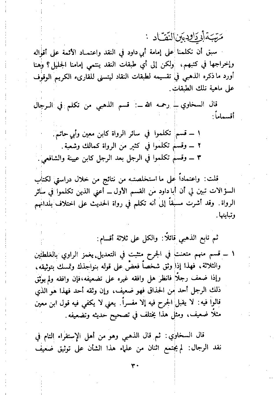 قال السخاوي - رحمه الله -: قسم الذهبي من تكلم في الرجال أقساماً: