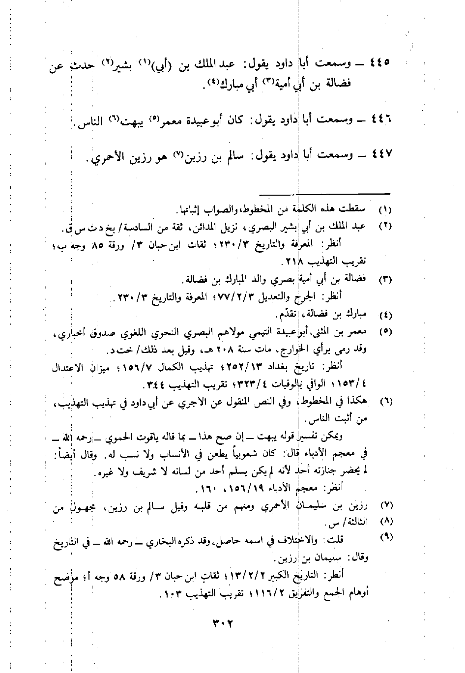 446- وسمعت أبا دَاوُد يَقُول: "كَانَ أَبُو عُبيدة مَعْمَر5 يَبْهَتُ6 النَّاس".