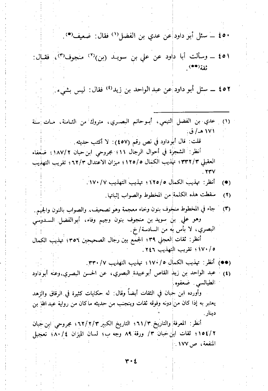 450- سئل أَبُو دَاوُدَ عَن عديِّ بْن الفَضْل1 فَقَالَ: "ضعيف" (( () .