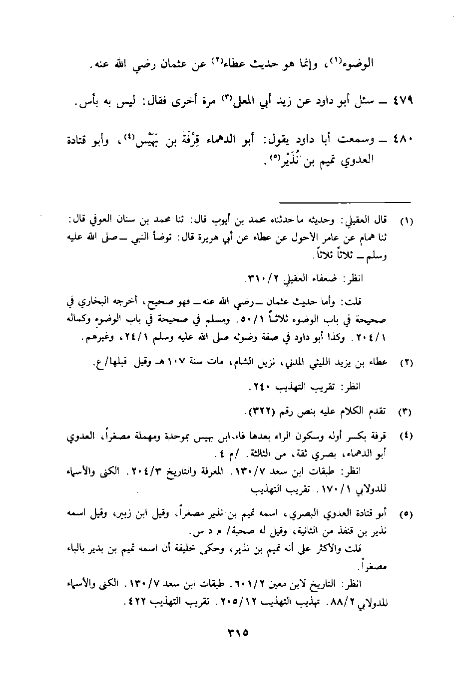 480- وسمعت أبا دَاوُد يَقُول: "أَبُو الدَّّهْماءِ قِرْفَة بن بَهَيْس4، وأبو قَتَادَة العَدَويُّ تميم بْن نُذَيْر"5.