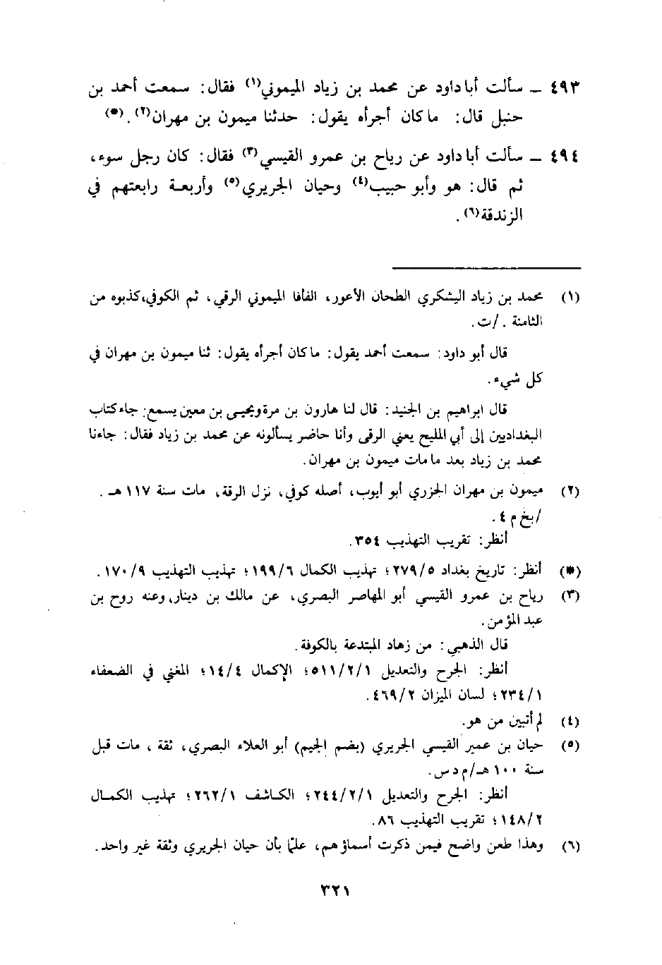 494- سألت أبا دَاوُد عَن رياح بْن عَمرو القيسي3 فَقَالَ: "كَانَ رجل سَوْءٍ، ثُمَّ قال: هو وأبو حبيب4 وحيان الجريري5 وأربعة رابعتهم في الزندقة"6.