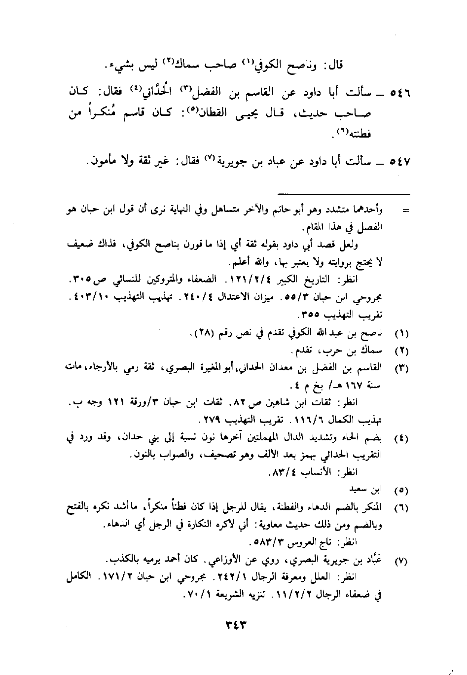 546- سألت أبا دَاوُد عَن القاسم بْن الفضل3 الحُدَّاني4 فَقَالَ: "كَانَ صاحب حَدِيث، قَالَ يَحْيَى الْقَطَّان5: كَانَ قاسم مُنْكرًا من فطنته"6.