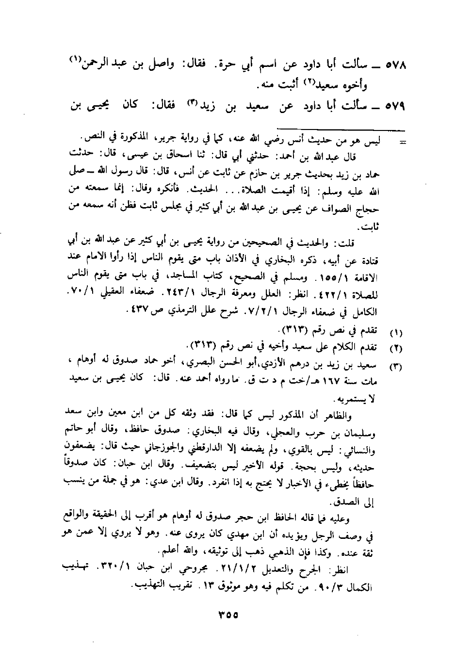 سألت أبا دَاوُد عَن سَعِيد بْن زَيد3 فَقَالَ: "كَانَ يَحْيَى بن