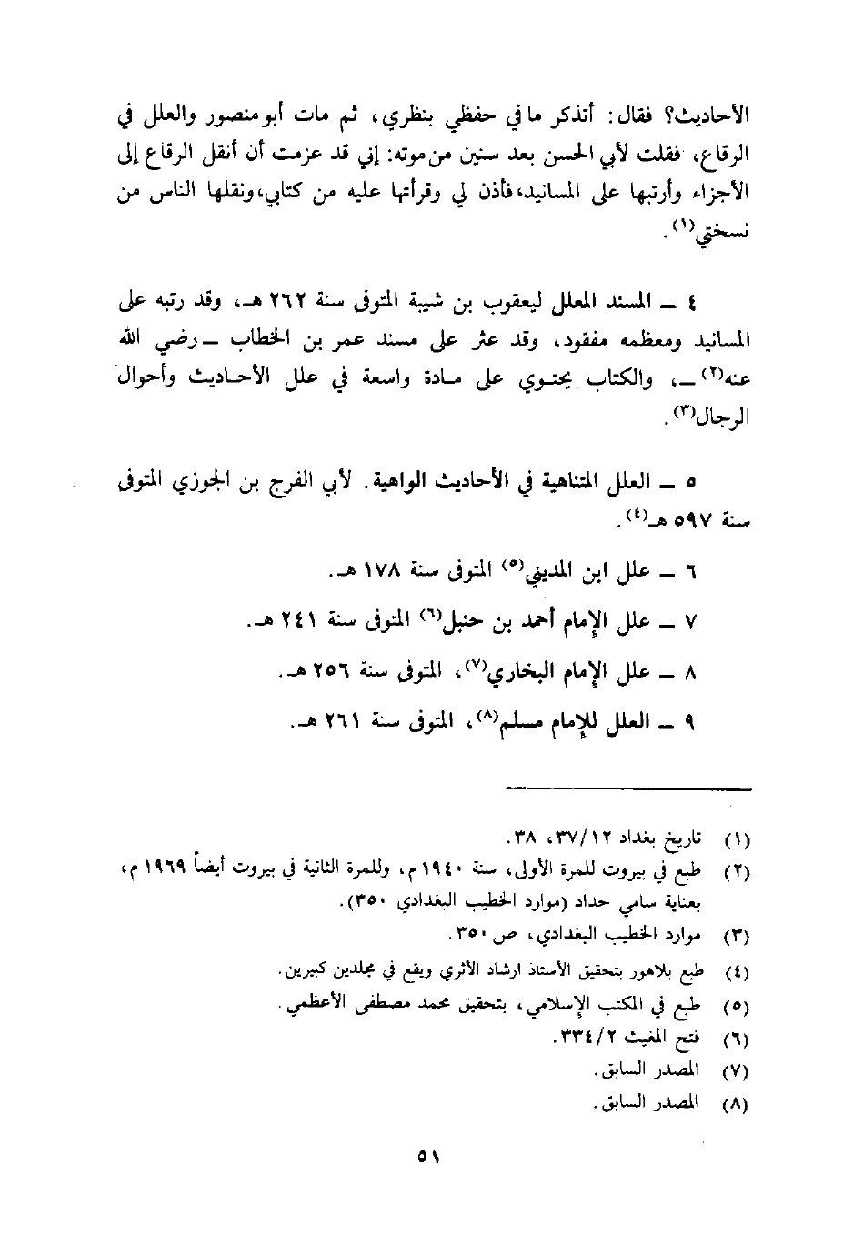 6- علل ابن المديني 5 المتوفى سنة 178هـ.