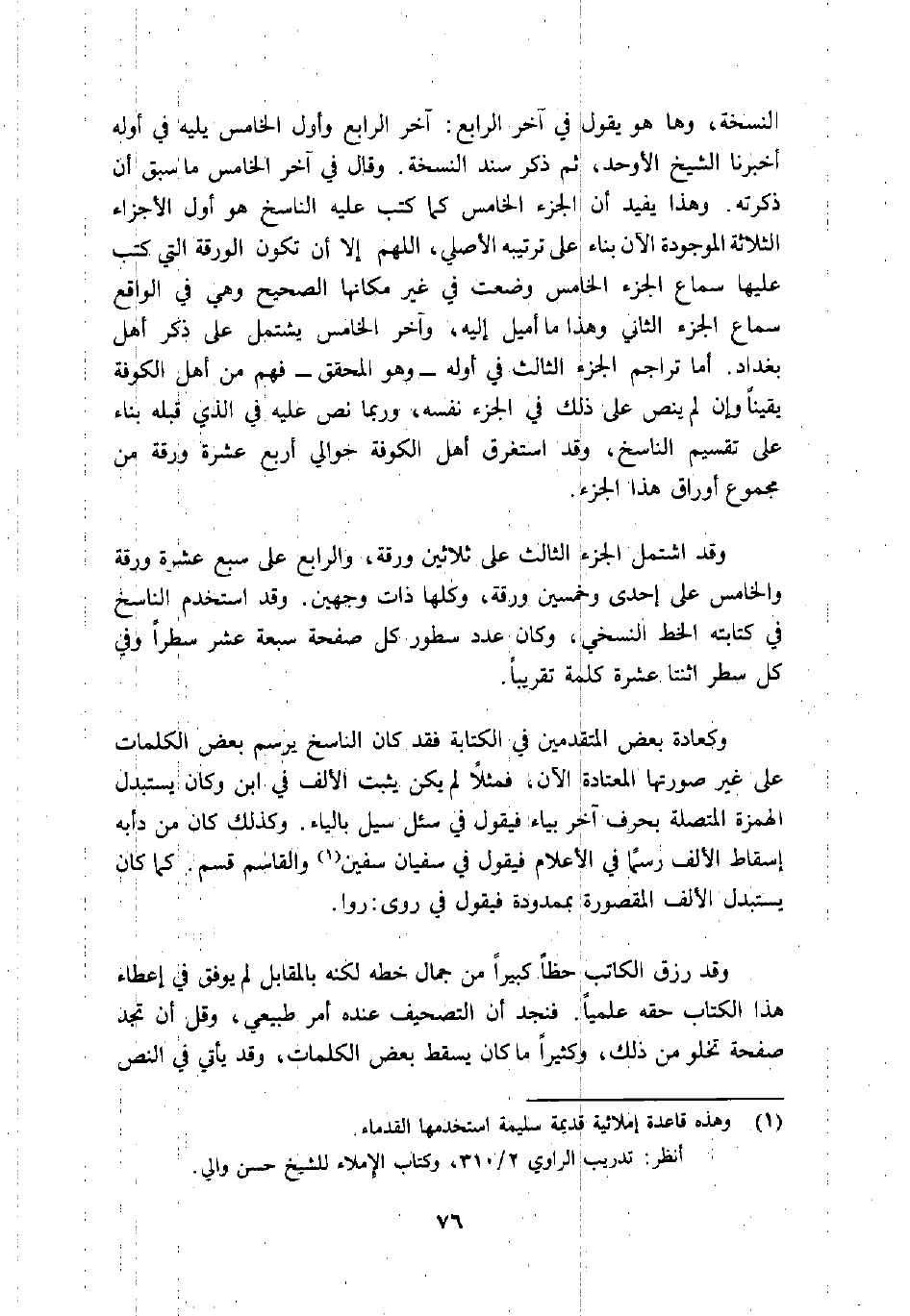 وكعادة بعض المتقدمين في الكتابة فقد كان الناسخ يرسم بعض الكلمات على غير صورتها المعتادة الآن، فمثلاً لم يكن يثبت الألف في ابن وكان يستبدل الهمزة المتصلة بحرف آخر بياء فيقول في سئل سيل بالياء. وكذلك كان من دأبه إسقاط الألف رسماً في الأعلام فيقول في سفيان سفين1 والقاسم قسم. كما كان يستبدل الألف المقصورة بممدودة فيقول في روى: روا.
