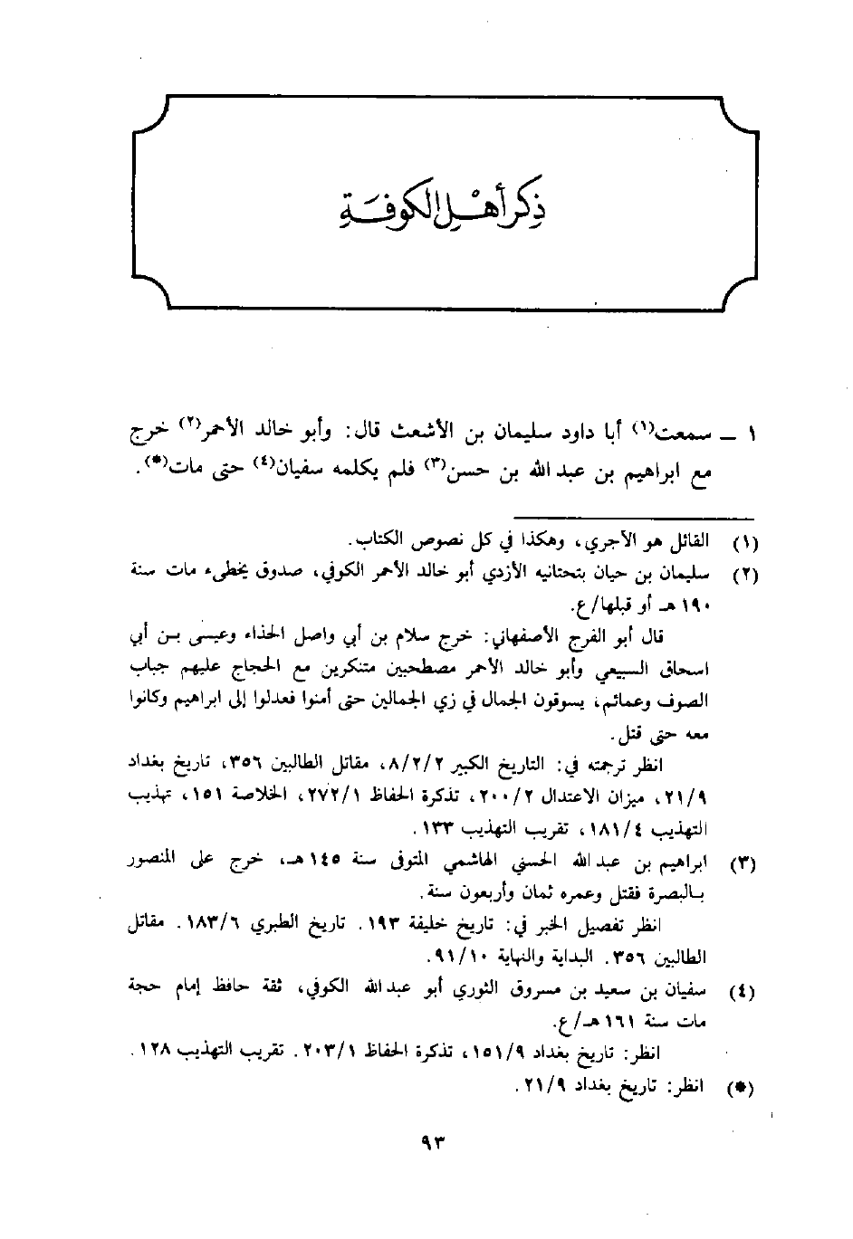 1- سمعت1 أبا دَاوُد سُلَيْمَان بْن الأشعث قَالَ: "وأبو خَالِد الأحمر2 خرج مَعَ إِبْرَاهِيم بْن عَبْد اللَّهِ بْن حسن3 فلم يكلمه سُفْيَان4 حَتَّى مَات" (*) .