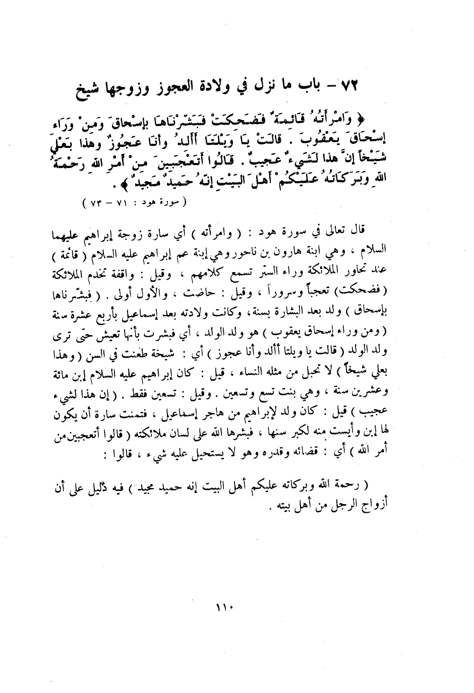 72 - بَاب مَا نزل فِي ولادَة الْعَجُوز وَزوجهَا الشَّيْخ