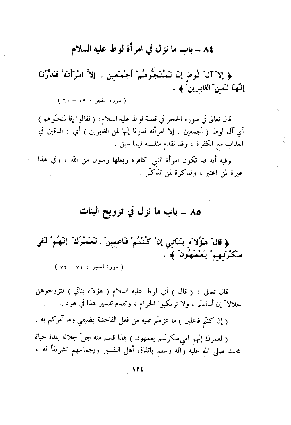 84 - بَاب مَا نزل فِي امْرَأَة لوط عَلَيْهِ السَّلَام