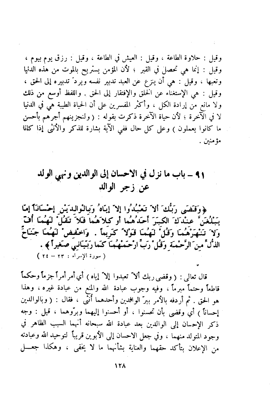 91 - بَاب مَا نزل فِي الْإِحْسَان إِلَى الْوَالِدين وَنهي الْوَلَد عَن زجر الْوَالِد