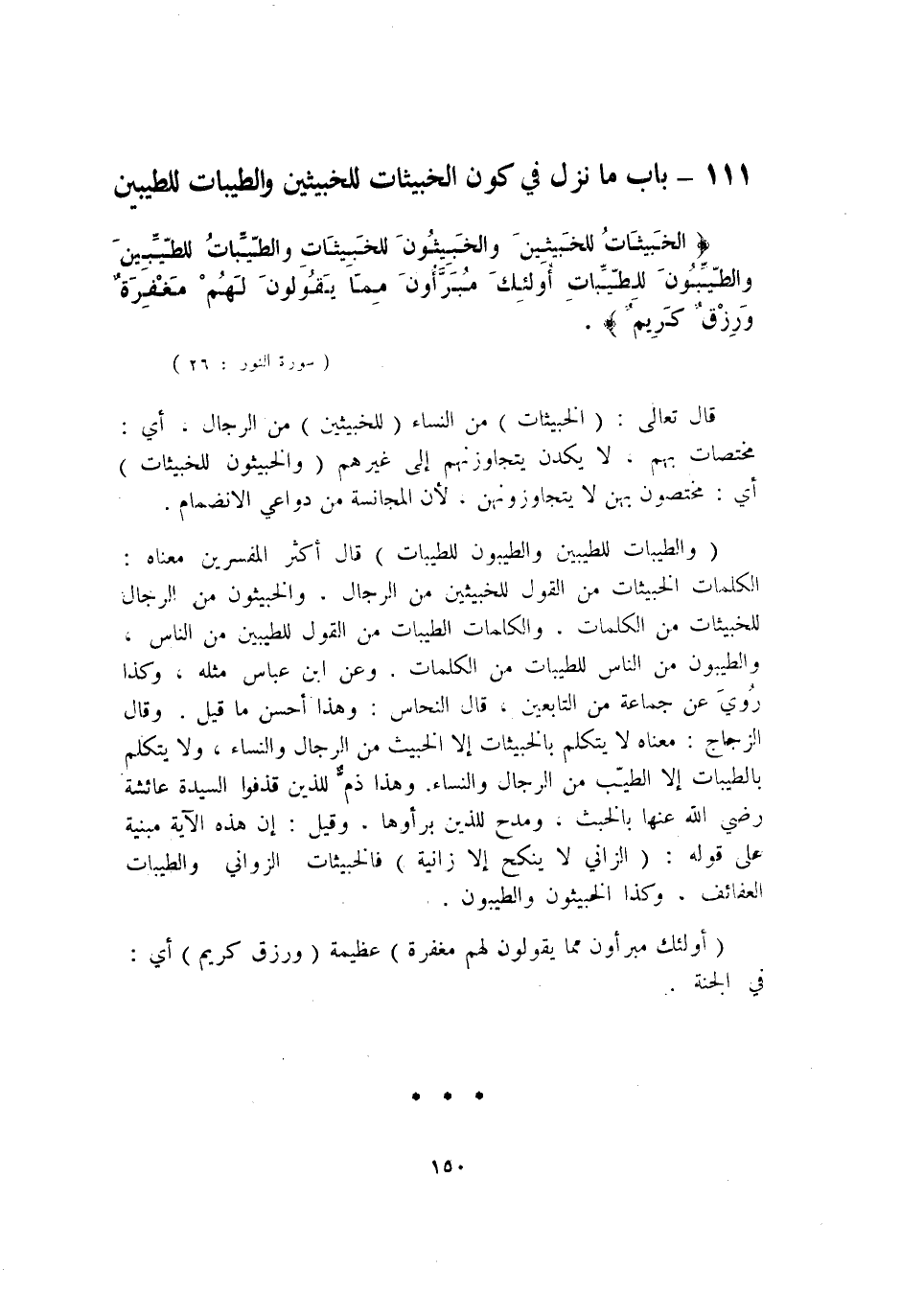 111 - بَاب مَا نزل فِي كَون الخبيثات للخبيثين والطيبات للطيبين