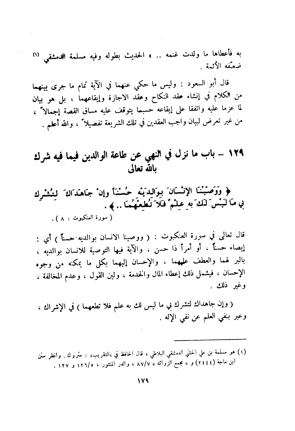 129 - بَاب مَا نزل فِي النَّهْي عَن طَاعَة الْوَالِدين فِيمَا فِيهِ شرك بِاللَّه تَعَالَى