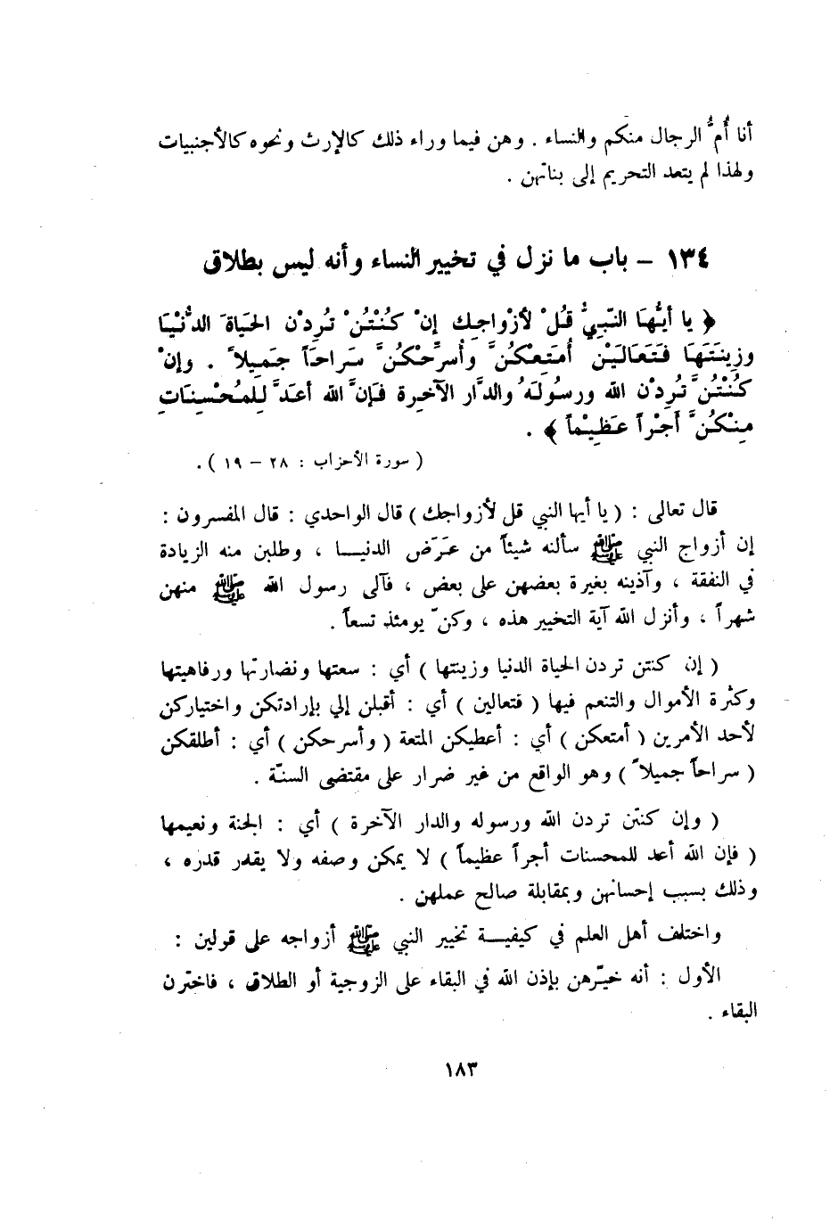 134 - بَاب مَا نزل فِي تَخْيِير النِّسَاء وَأَنه لَيْسَ بِطَلَاق