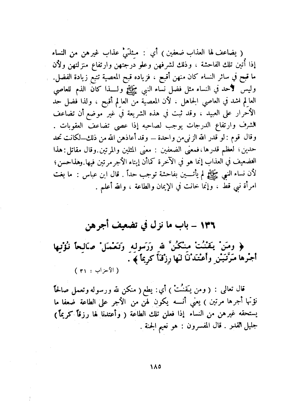 136 - بَاب مَا نزل فِي تَضْعِيف أجرهن