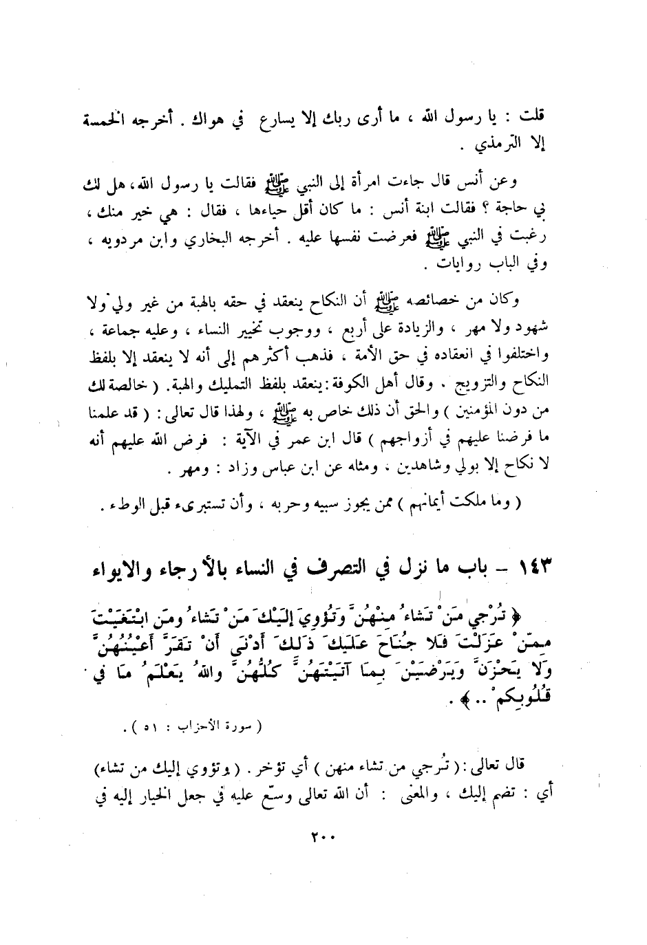 143 - بَاب مَا نزل فِي التَّصَرُّف فِي النِّسَاء بالأرجاء والايواء
