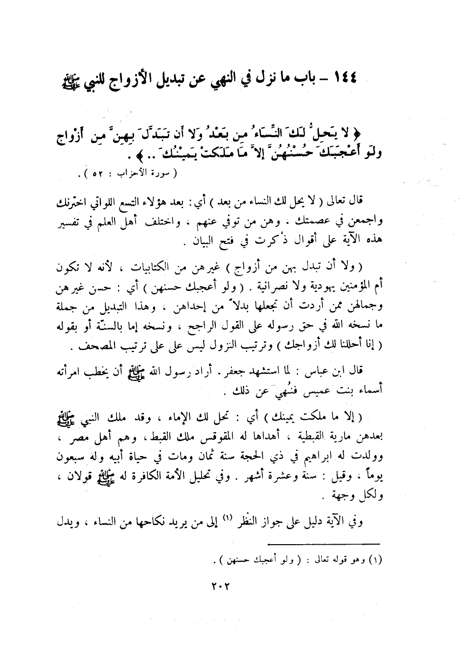 144 - بَاب مَا نزل فِي النَّهْي عَن تَبْدِيل الْأزْوَاج للنَّبِي صلى الله عَلَيْهِ وَسلم