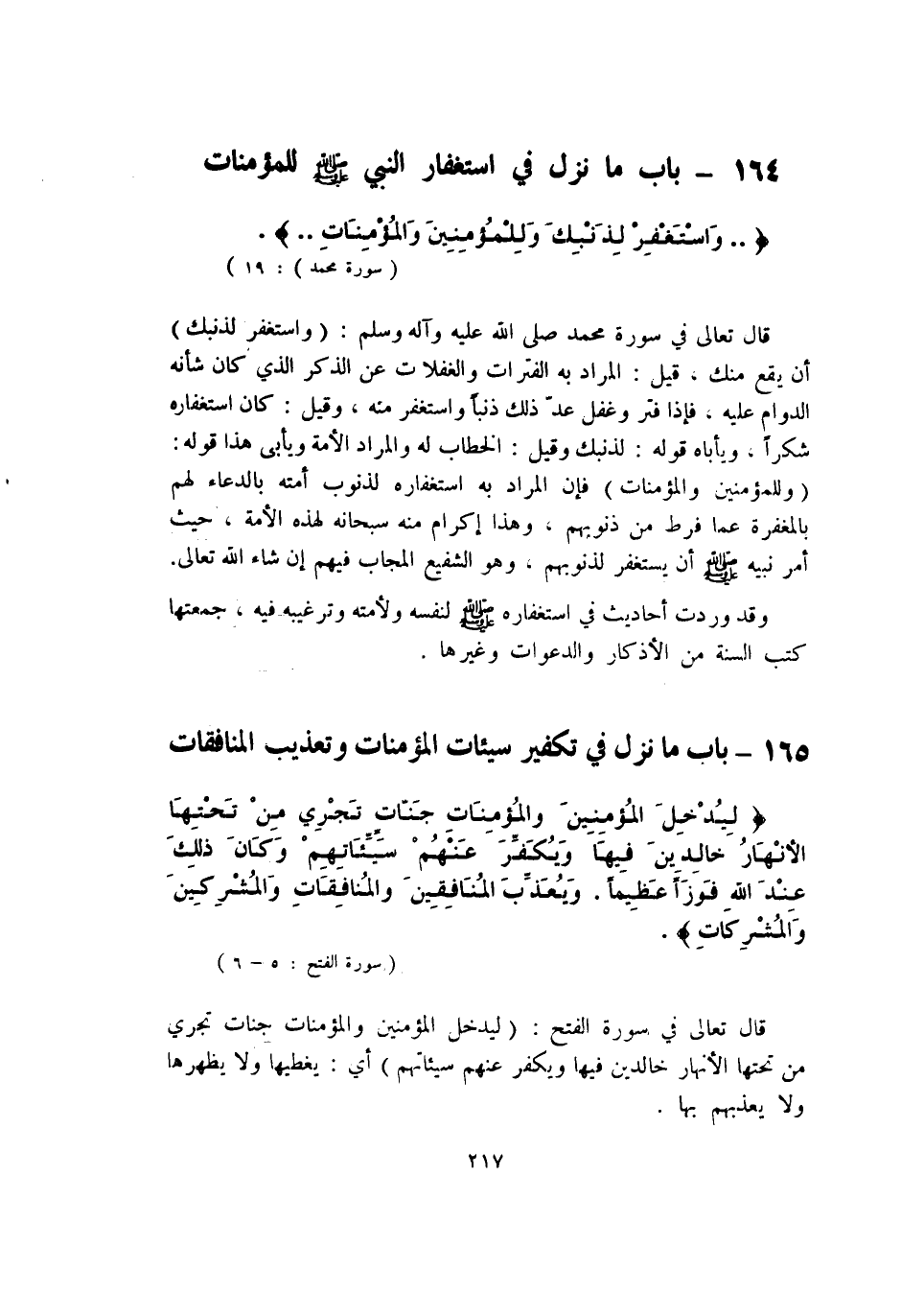 164 - بَاب مَا نزل فِي اسْتِغْفَار النَّبِي صلى الله عَلَيْهِ وَسلم للمؤمنات