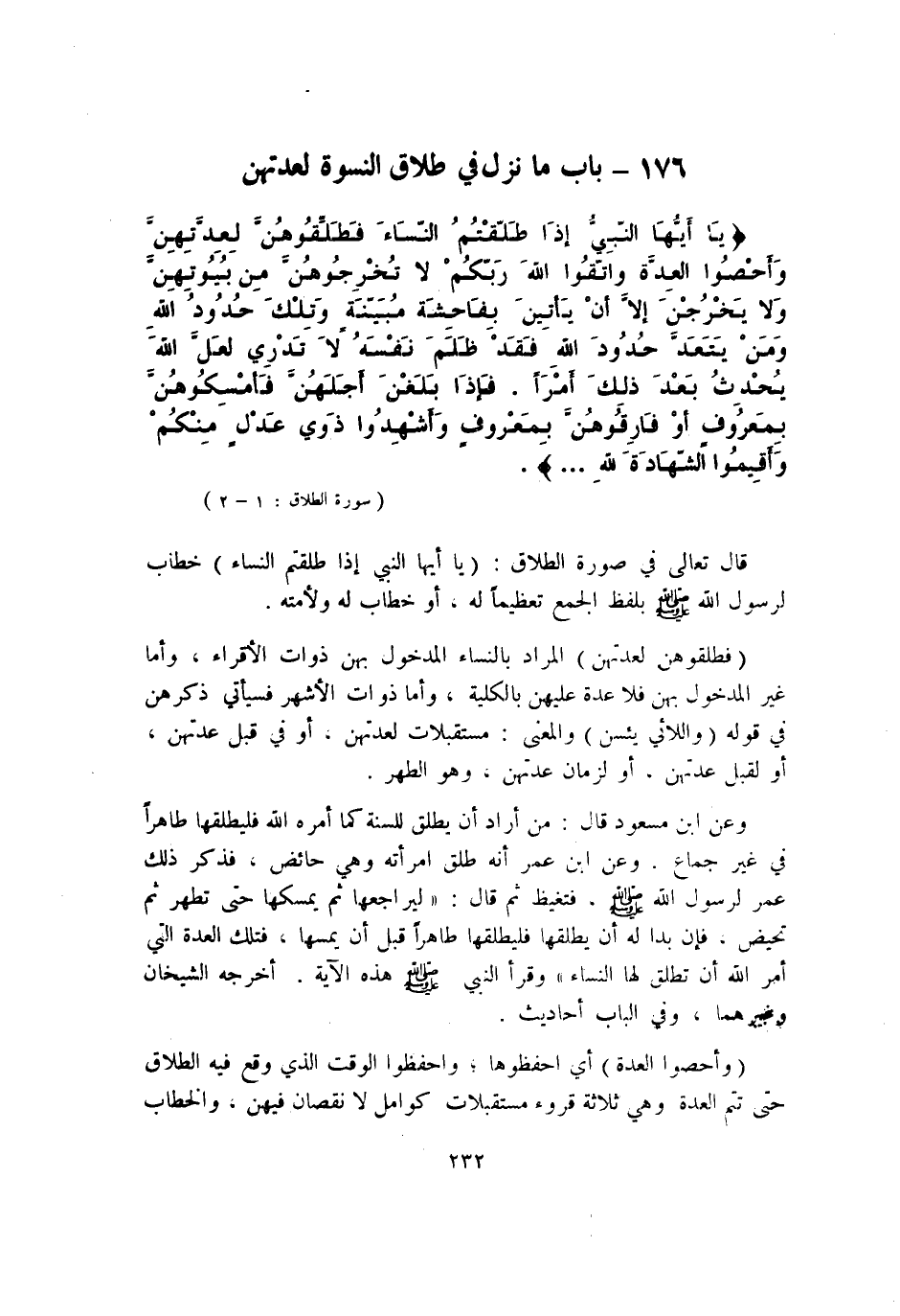 176 - بَاب مَا نزل فِي طَلَاق النسْوَة لعدتهن