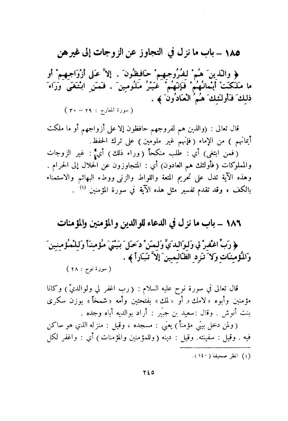 186 - بَاب مَا نزل فِي الدُّعَاء للْوَالِدين وَالْمُؤمنِينَ وَالْمُؤْمِنَات