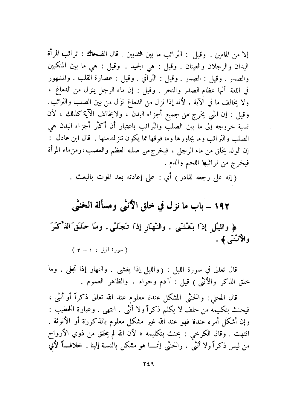 192 - بَاب مَا نزل فِي خلق الْأُنْثَى وَمَسْأَلَة الْخُنْثَى