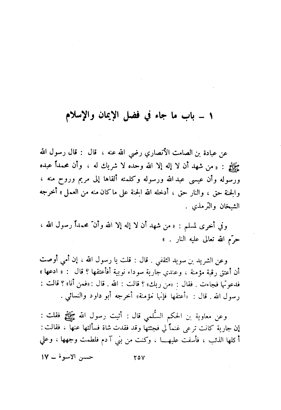1 - بَاب مَا جَاءَ فِي فضل الْإِيمَان وَالْإِسْلَام