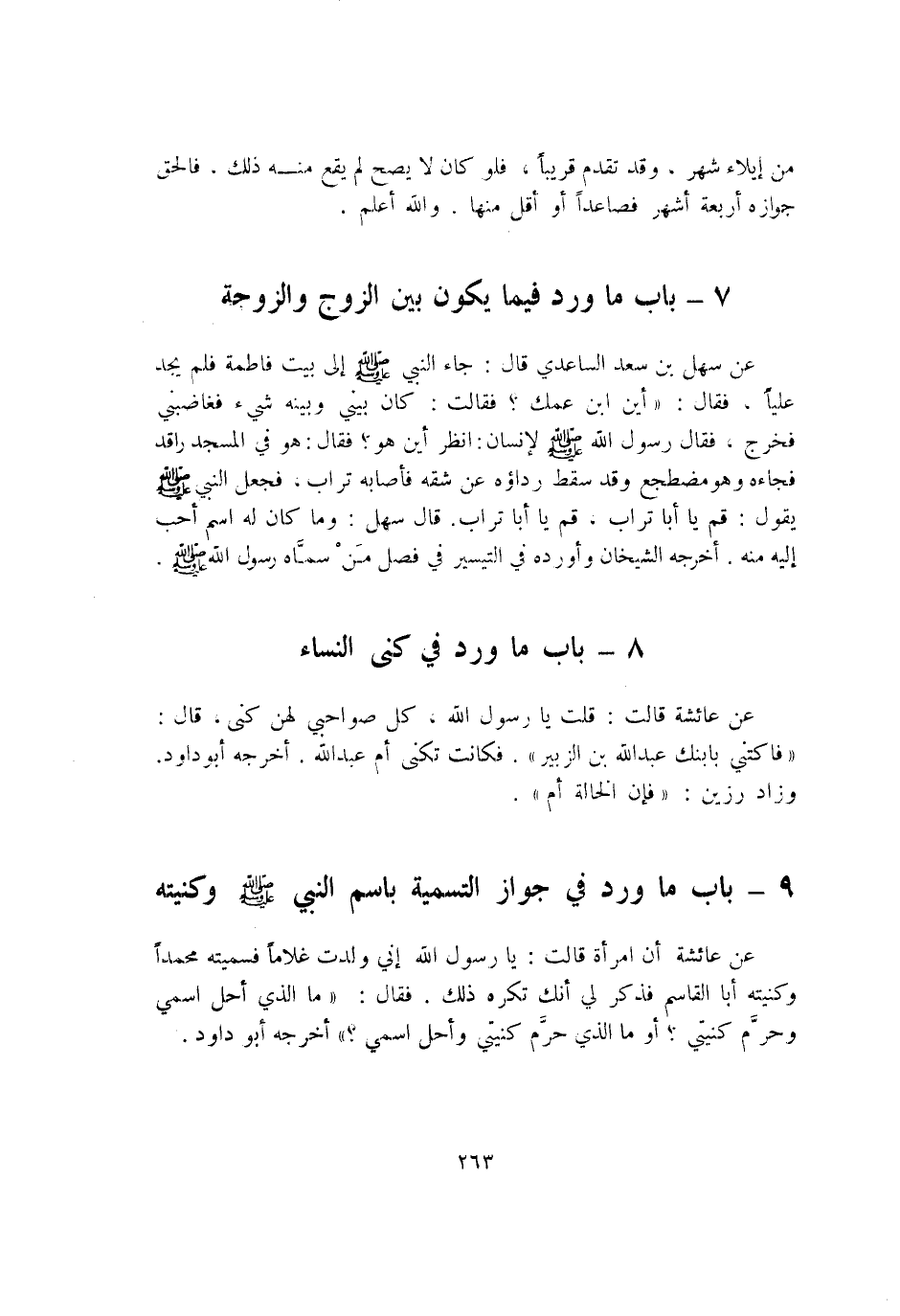 9 - بَاب مَا ورد فِي جَوَاز التَّسْمِيَة باسم النَّبِي صلى الله عَلَيْهِ وَسلم وكنيته