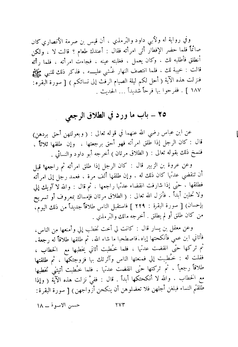 25 - بَاب مَا ورد فِي الطَّلَاق الرَّجْعِيّ