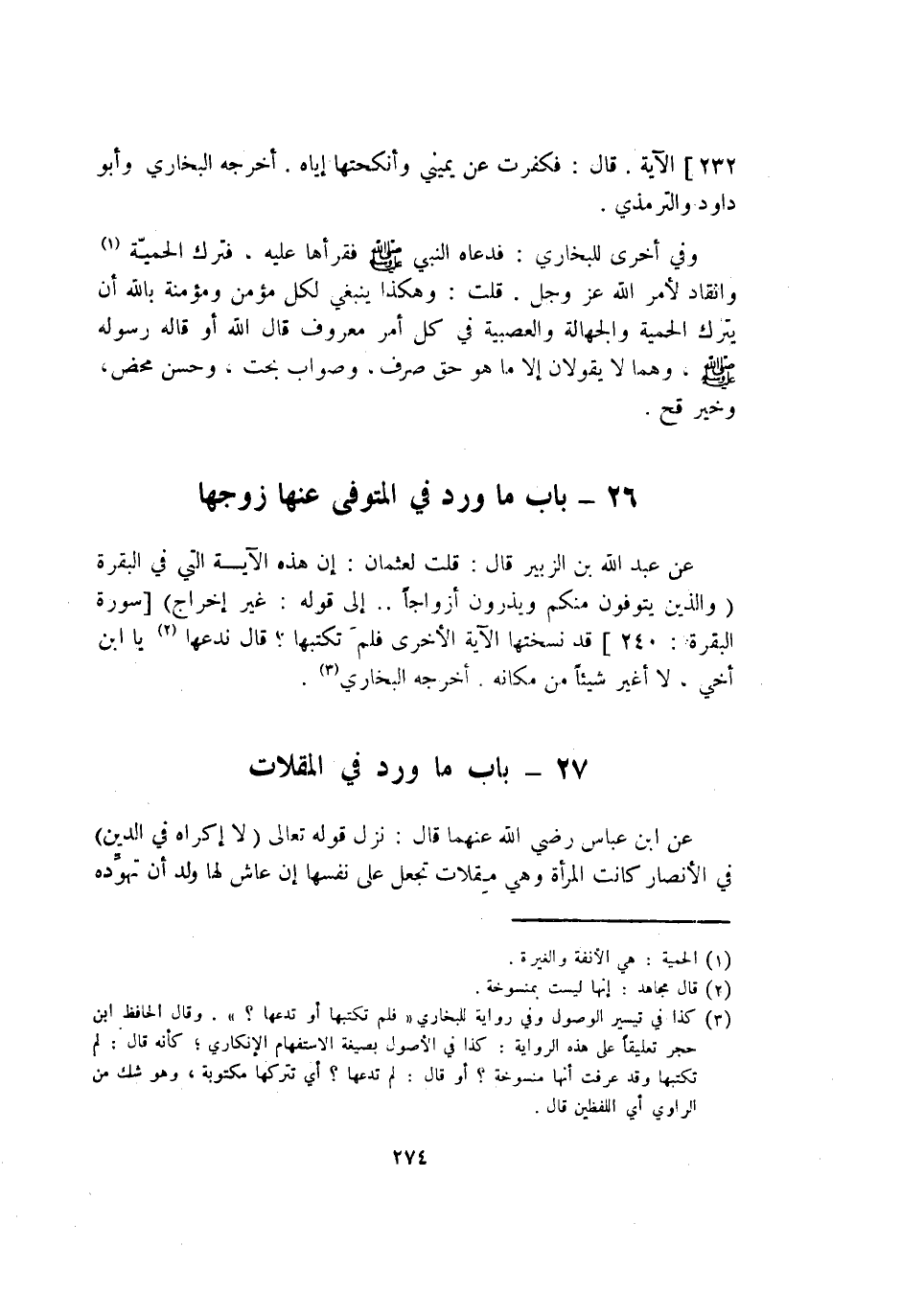 26 - بَاب مَا ورد فِي المتوفي عَنْهَا زَوجهَا